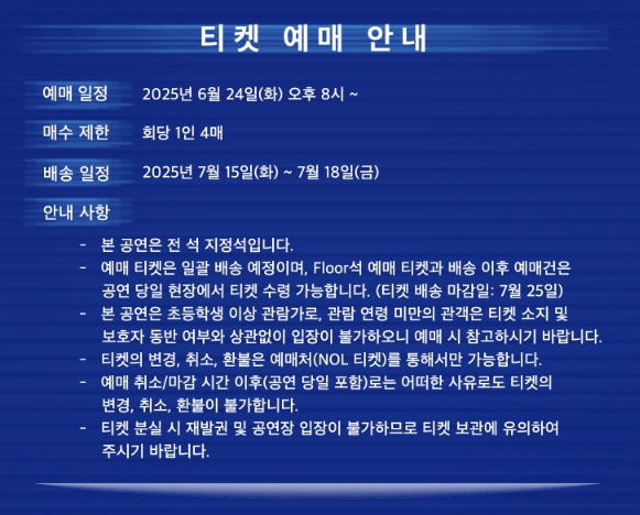 - 예매 오픈: 2025년 6월 24일(월) 오후 8시