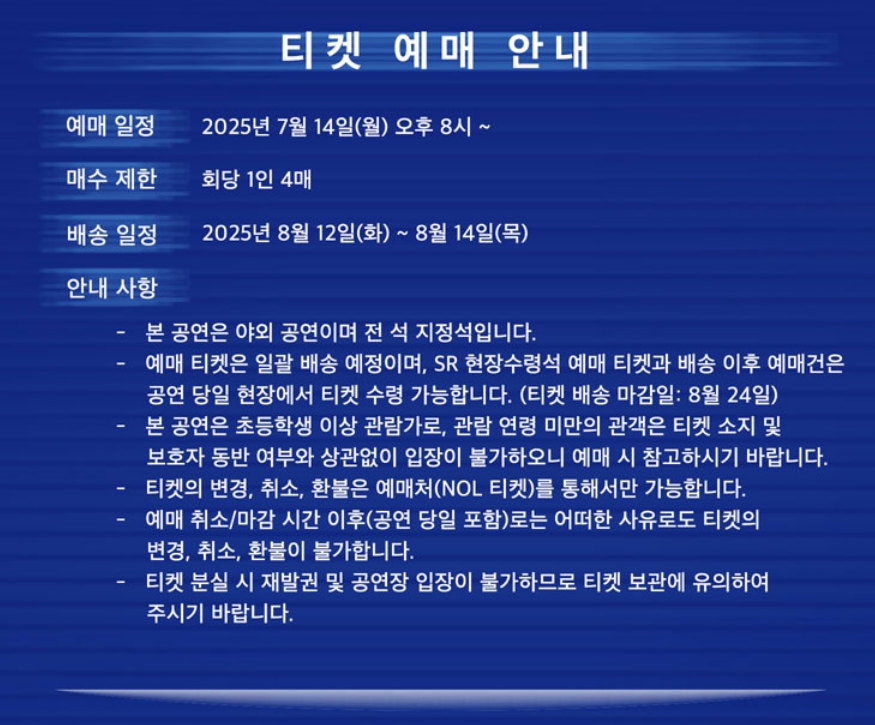 - 예매 오픈: 2025년 7월 14일(월) 오후 8시