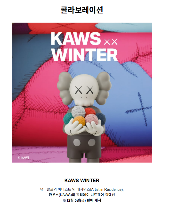 - KAWS WINTER : 유니클로의 아티스트 인 레지던스, 카우스(KAWS)의 홀리데이 니트웨어 컬렉