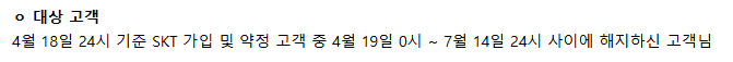 - 해킹 사고 기준일 2025년 4월 18일 24시 이전 약정 가입자