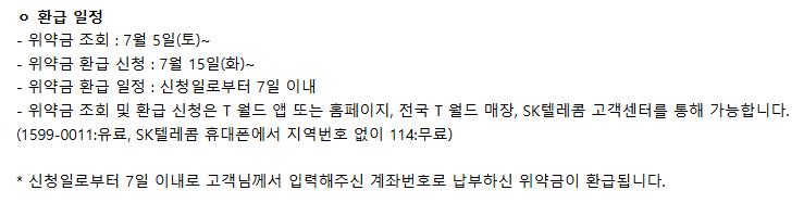 | 신청 방법 | T월드 앱/웹 → 해지/위약금 조회 → 환급 신청 |