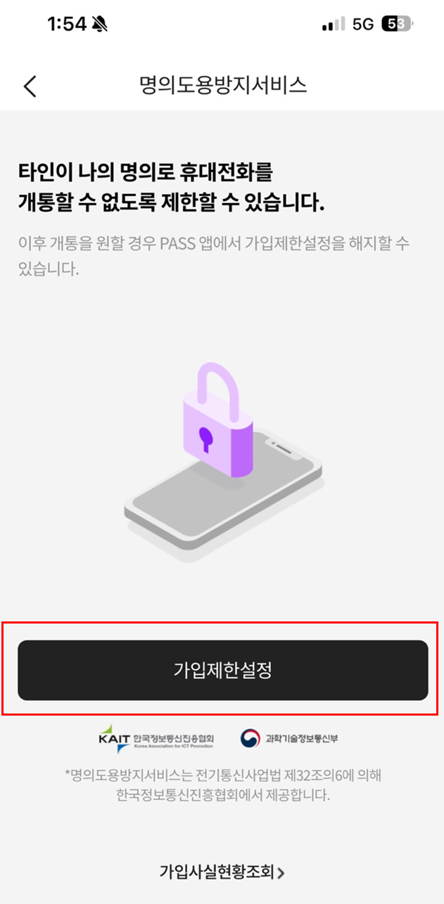 4. 명의도용방지 가입(가입제한설정)